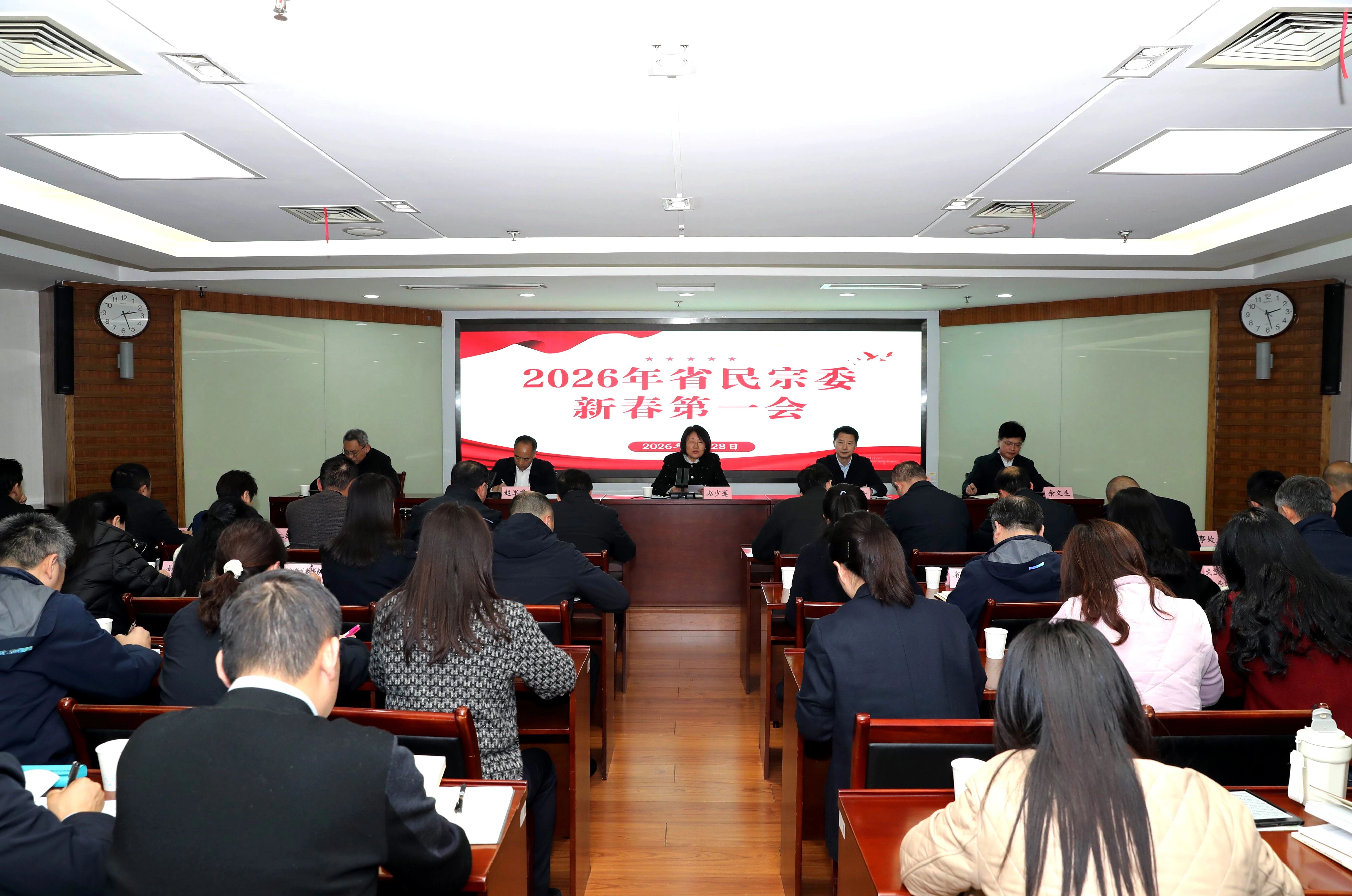2月28日,湖北省民宗委以“民宗有我 建功有为”为主题召开新春第一会,会议深入学习贯彻全省新春第一会精神,牢固树立和践行正确政绩观,并对新年度全省民族宗教重点工作进行再部署,努力实现一季度“开门稳”“开门好”,确保在“十五五”开局之年交出精彩答卷。省委统战部副部长,省民宗委党组书记、主任赵少莲出席会议并讲话。